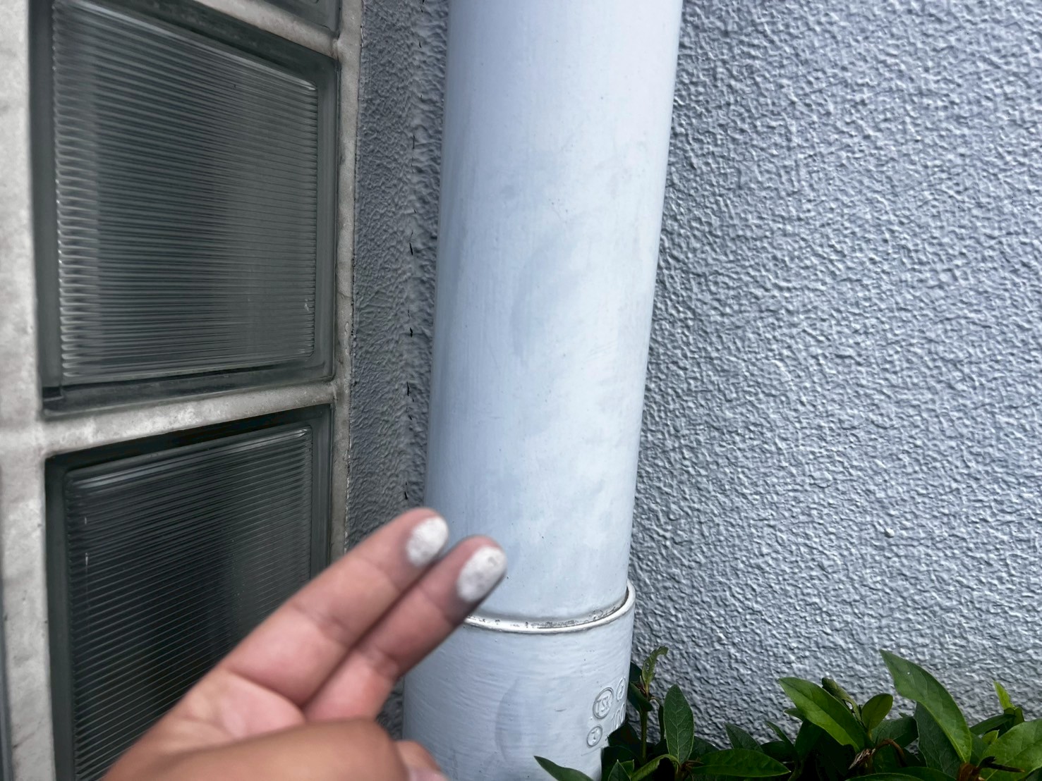 外壁や雨樋に発生するチョーキング現象は、塗膜の樹脂が紫外線や風雨で劣化し、