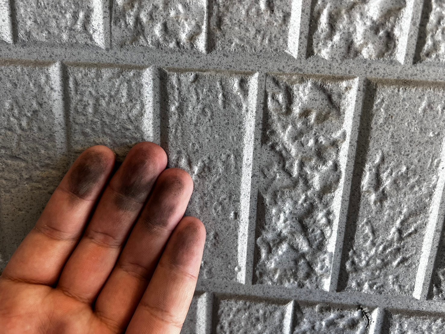 外壁や雨樋に発生するチョーキング現象は、塗膜の樹脂が紫外線や風雨で劣化し、