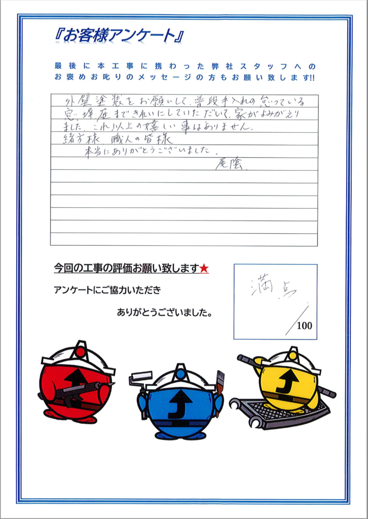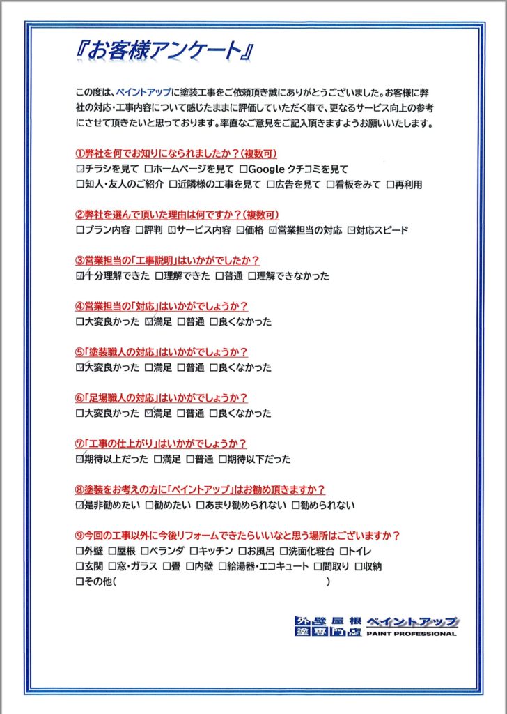 この度は数ある塗装会社の中からペイントアップに塗装工事のご依頼頂きまして誠に有難うございました!